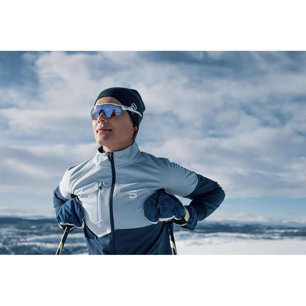 Wind- and water-repellent softshell with stretch panel in back for good mobility and ventilation. Bionic Finish Eco® technology on the fabric surface ensures that light rain and sleet run off.