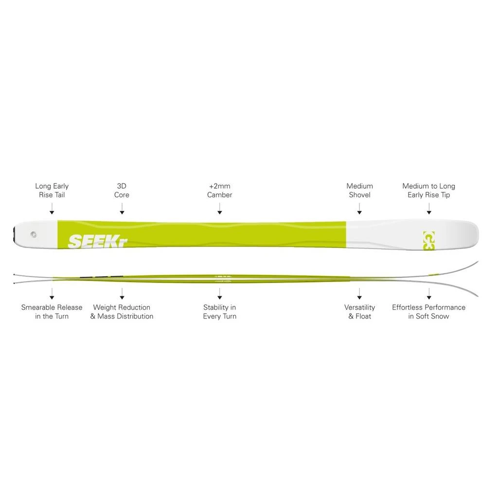 Ridiculously light and agile, the SEEKr 100 redefines backcountry performance and dare we say pleasure in that all-mountain sweet-spot of 100 mm underfoot. The new SEEKr takes the technical FLYRIDE+ carbon construction from the award-winning FINDr then cranks up the fun dial with a modern all-mountain shape and profile. Updated with magnetic contact points hold skis together without a strap for faster transitions and less fiddle.