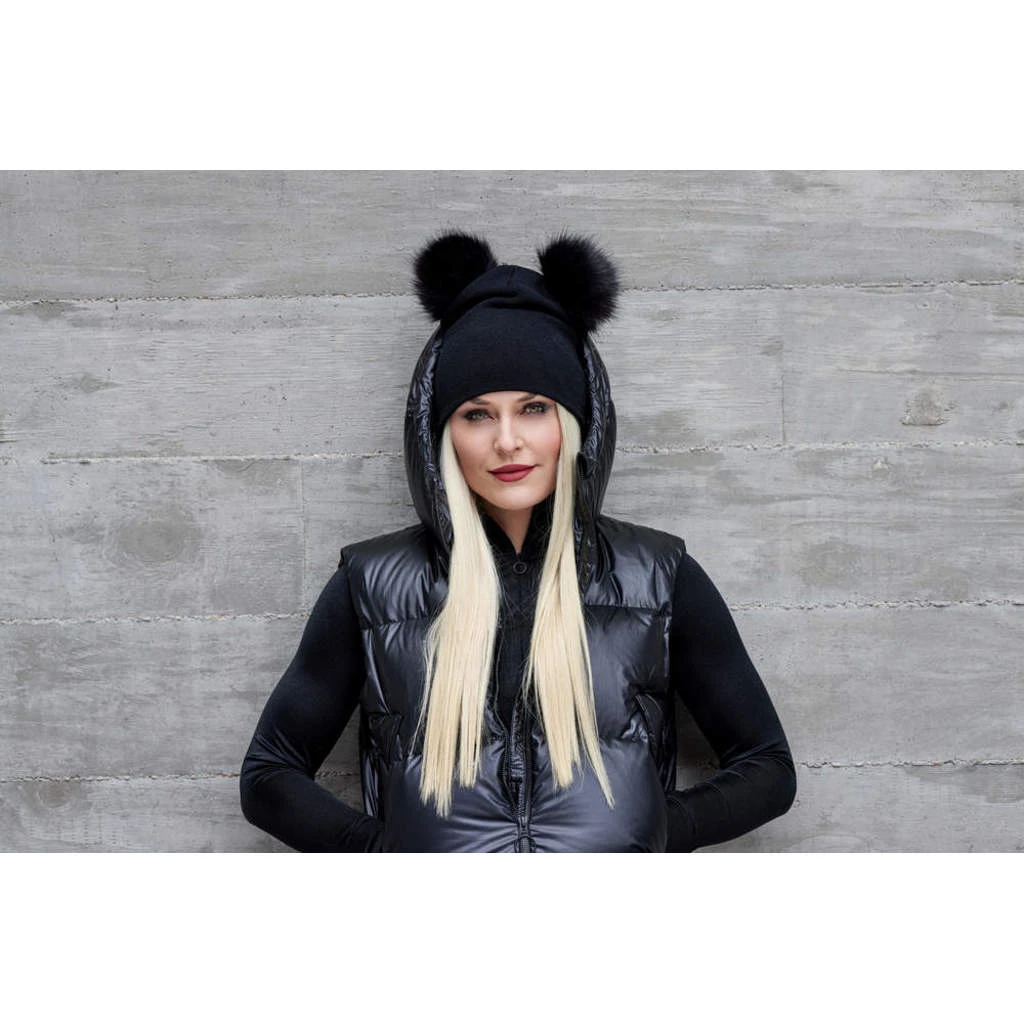 The LINDSEY Beanie Women from Lindsey Vonn’s new Legacy collection is as warm as it is stylish. A double layer beanie with a circular knit, it has two pom-poms made from fake fur and ’82’ in tonal embroidery on one side.