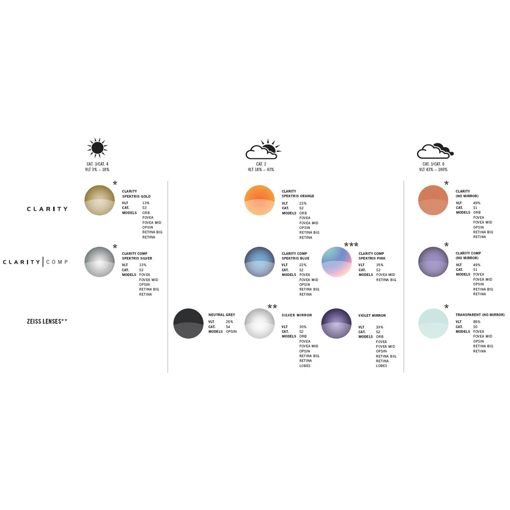 • Clarity double lens from Zeiss, category 2, VLT 22%