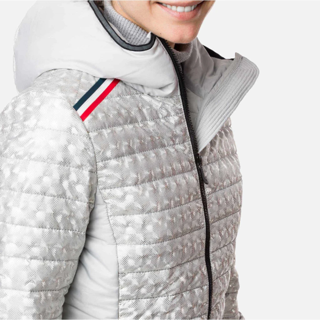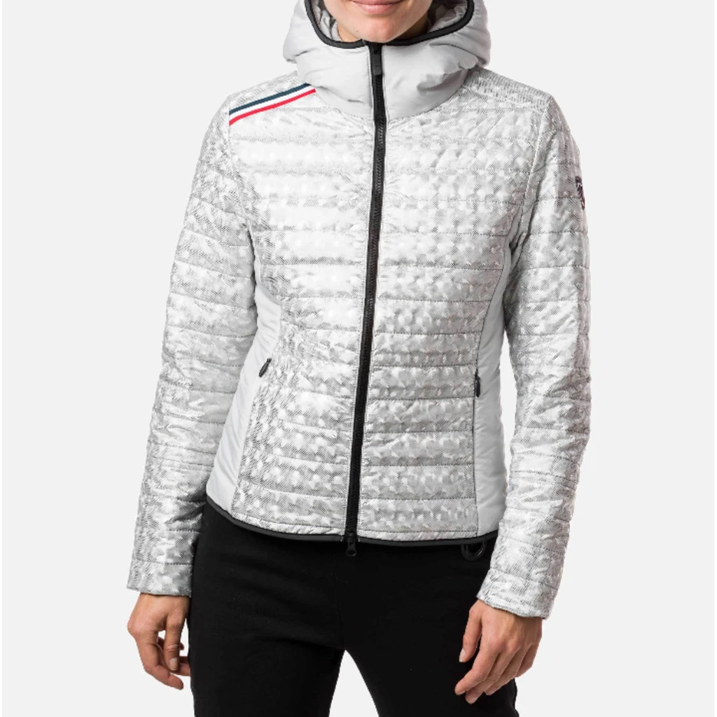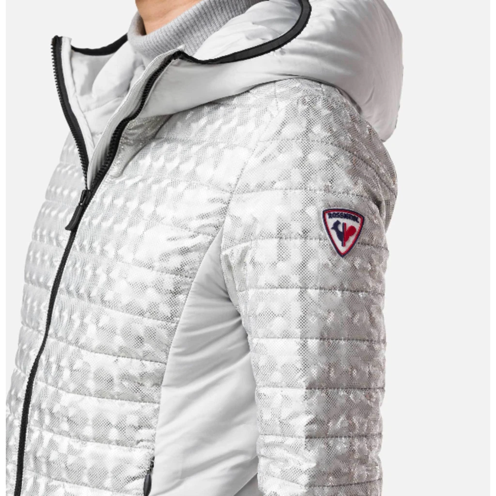 The W CYRUS SILVER JKT is a women’s hooded puffer jacket that can be worn under a ski jacket or all year round in cool weather. Redefining the rules of style and tech, this jacket features an ultra-trendy, lightweight, metallic fabric that guarantees warmth.